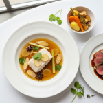 • Jour J (15 min avant service) : Cuire filets poisson vapeur panier bain-marie, cœur 65°C (thermomètre sonde), 8-10 min selon épaisseur. Poisson ne doit pas dépasser 68°C (dénaturage protéines).
