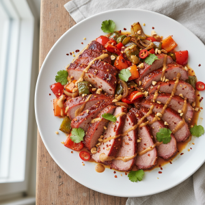 Le rôti de porc à la thaïlandaise incarne parfaitement la cuisine durable en restauration collective : viande de qualité supérieure (label rouge ou bio fermier), marinade longue valorisant les saveurs naturelles, et recours systématique aux circuits courts. Cette recette respecte l’obligation EGAlim (50% produits durables, 20% bio minimum) tout en maîtrisant les coûts portion. La marinade — pâte curry rouge bio, lait coco commerce équitable, citronnelle et gingembre frais — permet une cuisson basse température sans collagène ajouté, réduisant gaspillage et additifs.