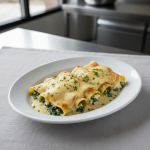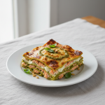 • Cuisson : four 180°C, 35 min cœur (sonde +72°C cœur pâtes). Gratiné doré en derniers 5 min si besoin.