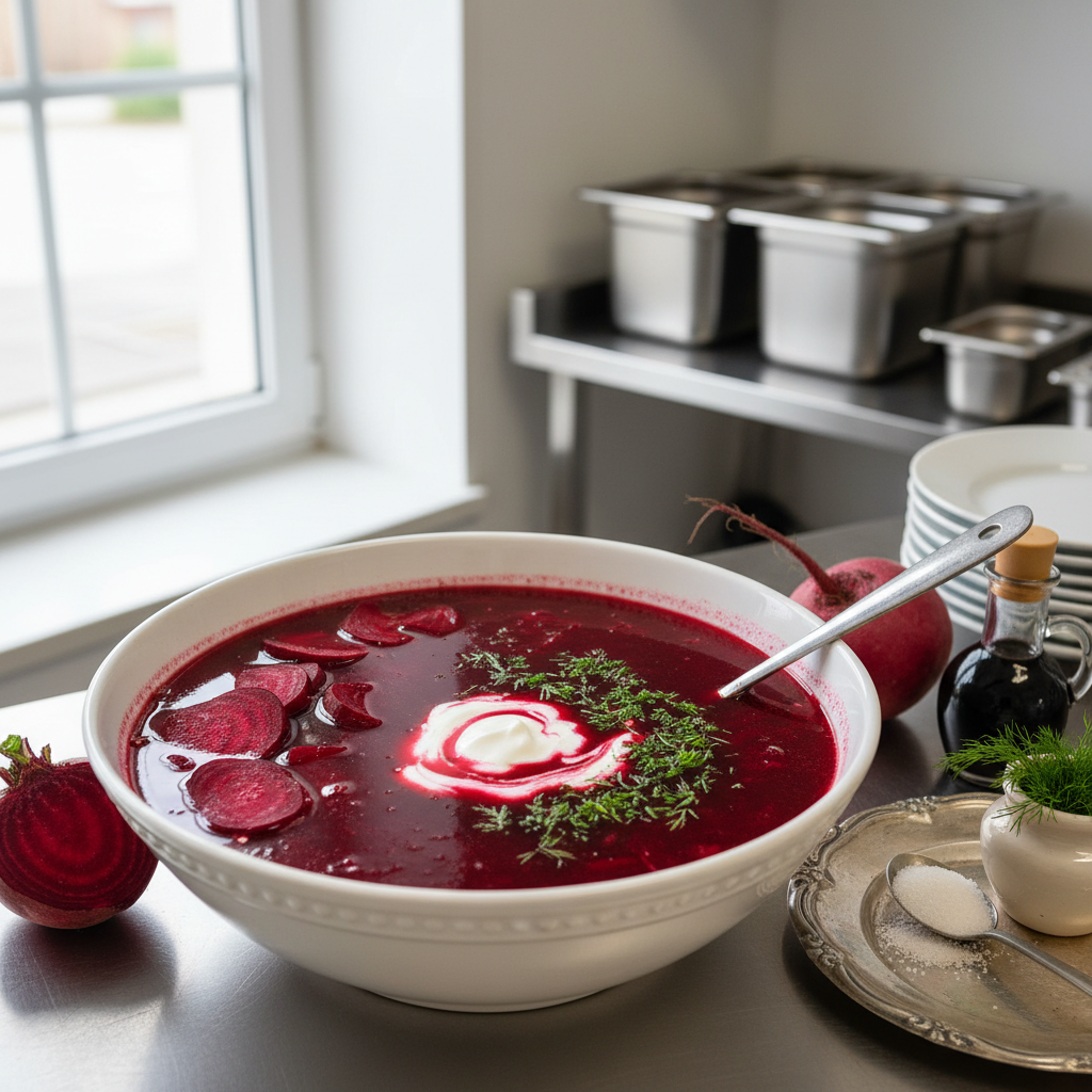 Vous cherchez une soupe gourmande, colorée et 100% maison ? Le barszcz polonais est votre réponse. Préparé avec des betteraves fraîches de saison, du bouillon fait soi-même et une crème onctueuse, c’est un plat roboratif qui réchauffe tout en respectant la nature.