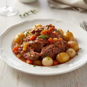 Voici la recette du bœuf braisé qui sent l’Italie et la grand-mère française : longuement mijoté à feu doux, la viande fond, la sauce s’enrichit de tous les jus. Une préparation rustique, généreuse, parfaite pour un repas en famille ou entre amis. Aucun secret : de bons produits frais, du temps, et une cuillère de patience.