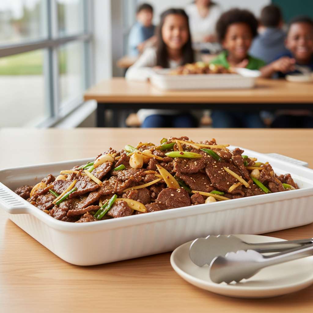 Un plat rapide, gourmand et revisité vers la qualité : viande tendre, gingembre frais vivifiant, oignons verts croquants. Si vous avez des végétariens à table, remplacez la viande par du tofu ferme nature, même timing de cuisson. À servir avec du riz blanc ou des nouilles fraîches pour un repas complet et équilibré.