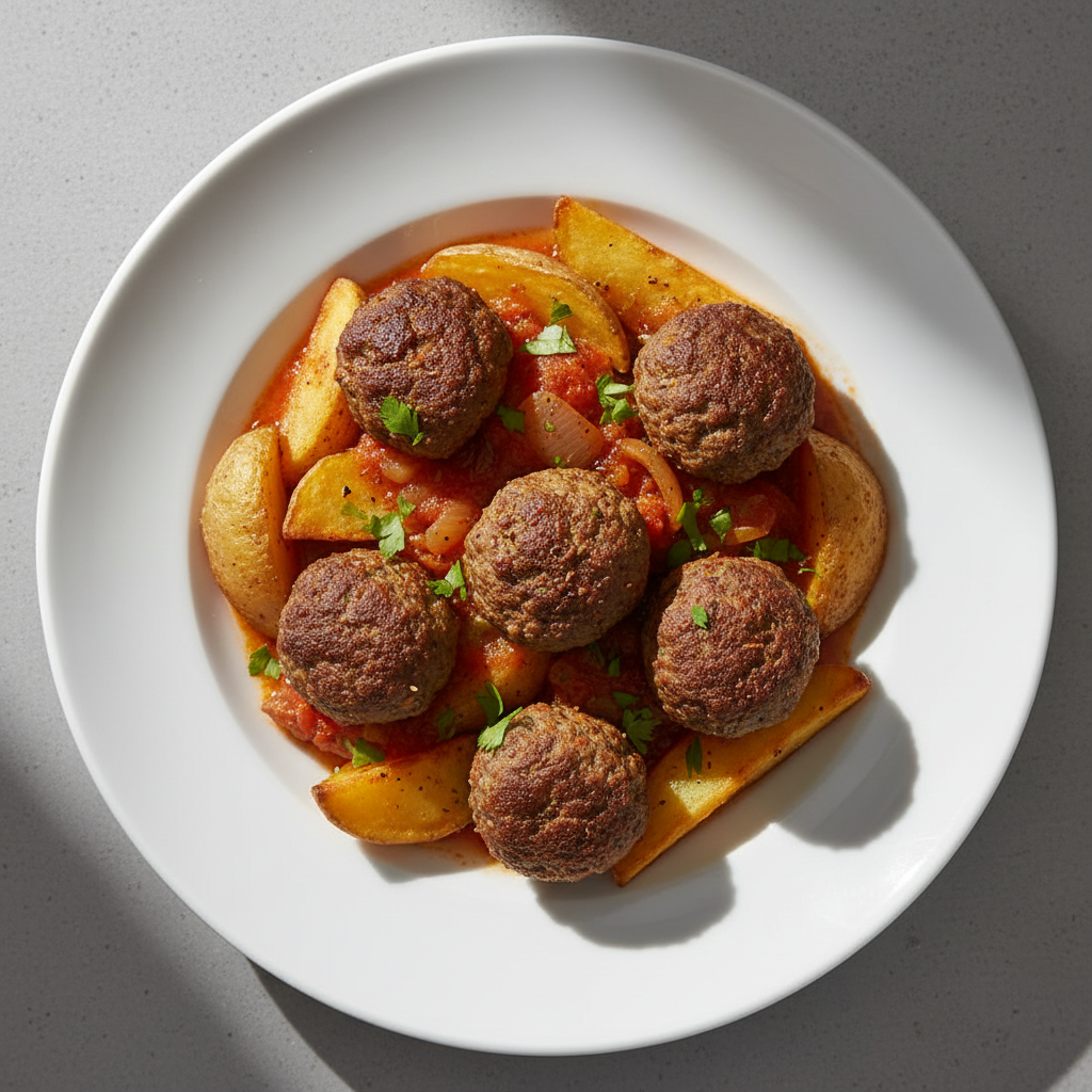 Kefta Batata : boulettes d'agneau libanaises, pommes de terre et sauce tomate