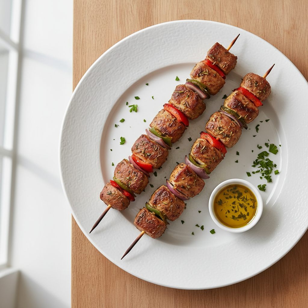 Ces brochettes sont l’occasion d’acheter votre porc auprès d’un producteur local ou d’une AMAP : meilleur goût et impact environnemental réduit. À servir avec une salade verte croquante et du pain grillé pour un repas complet et équilibré.