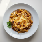 - Cuisson : Four 180°C pendant 25 min. La sauce commence à peine à cuire, les pâtes sont Al dente. Servez chaud avec une salade verte et du pain complet.