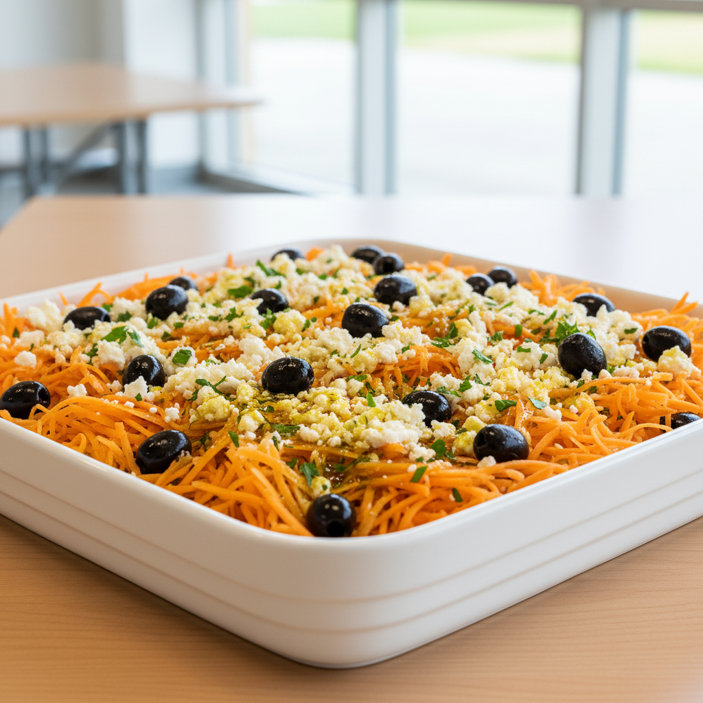 Envie d’une entrée fraîche, colorée et pleine de saveurs méditerranéennes ? Cette salade de carottes râpées, féta et olives est un classique revisité qui met en valeur le croquant des carottes de saison, l’onctuosité de la féta et le parfum des olives noires. Rapide à préparer, elle apporte vitamines, fibres et calcium — idéale pour un déjeuner léger ou une entrée qui change des sempiternes carottes râpées vinaigrette !