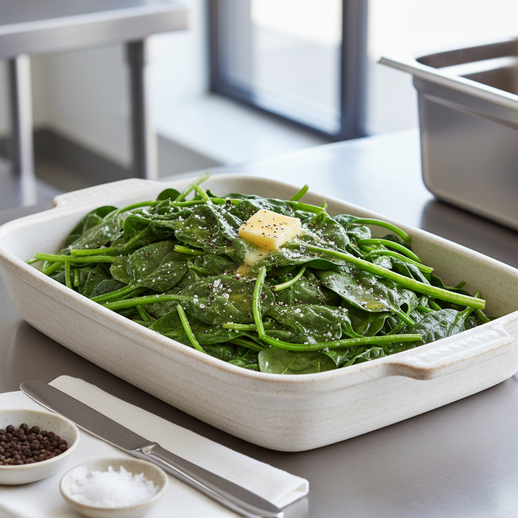 Référentiel Restauration Collective » Restauration collective » Épinards en branches au beurre : la recette simple et savoureuse qui plaît à toute la famille