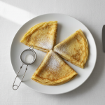- Versez farine (250g) + sucre (50g) + sel pincée dans un saladier. Dans un autre récipient, fouettez 2 œufs + 300ml lait + 30g beurre fondu. Versez le liquide sur le sec, mélangez jusqu'à obtenir une pâte lisse, sans grumeaux.