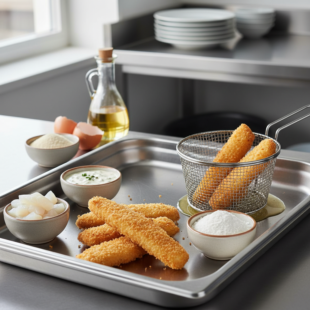 - Friture : Plongez 3-4 goujonnettes à la fois. Cuisez 4-5 minutes jusqu'à dorage léger et croustillant. Égouttez sur papier absorbant.