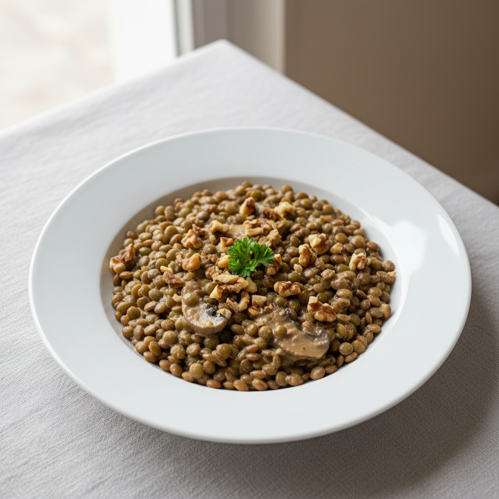 Lentilles vertes aux cèpes et noix : confort et simplicité