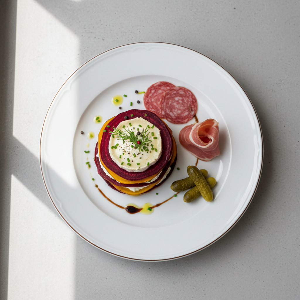 Millefeuille de betteraves et chèvre frais : l'entrée smart des familles éco-responsables