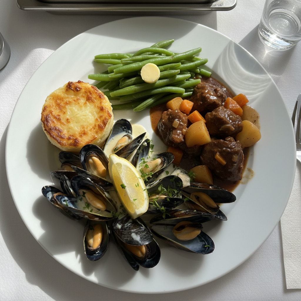 Servez immédiatement, bien chaud, avec du pain grillé ou des frites maison pour tremper dans la sauce. À accompagner d’un Chablis, Muscadet ou Picpoul de Pinet blanc sec. Les restes se conservent 24h au réfrigérateur, à réchauffer doucement au bain-marie (jamais à l’ébullition).