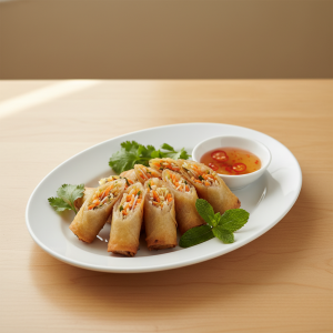 - Friture : chauffez l'huile à 170°C (ou testez avec un morceau de galette : doit remonter rapidement et dorer en 2-3 min). Faites frire 2-3 nems à la fois, 3 min total, en les retournant à mi-cuisson. Égouttez sur papier.
