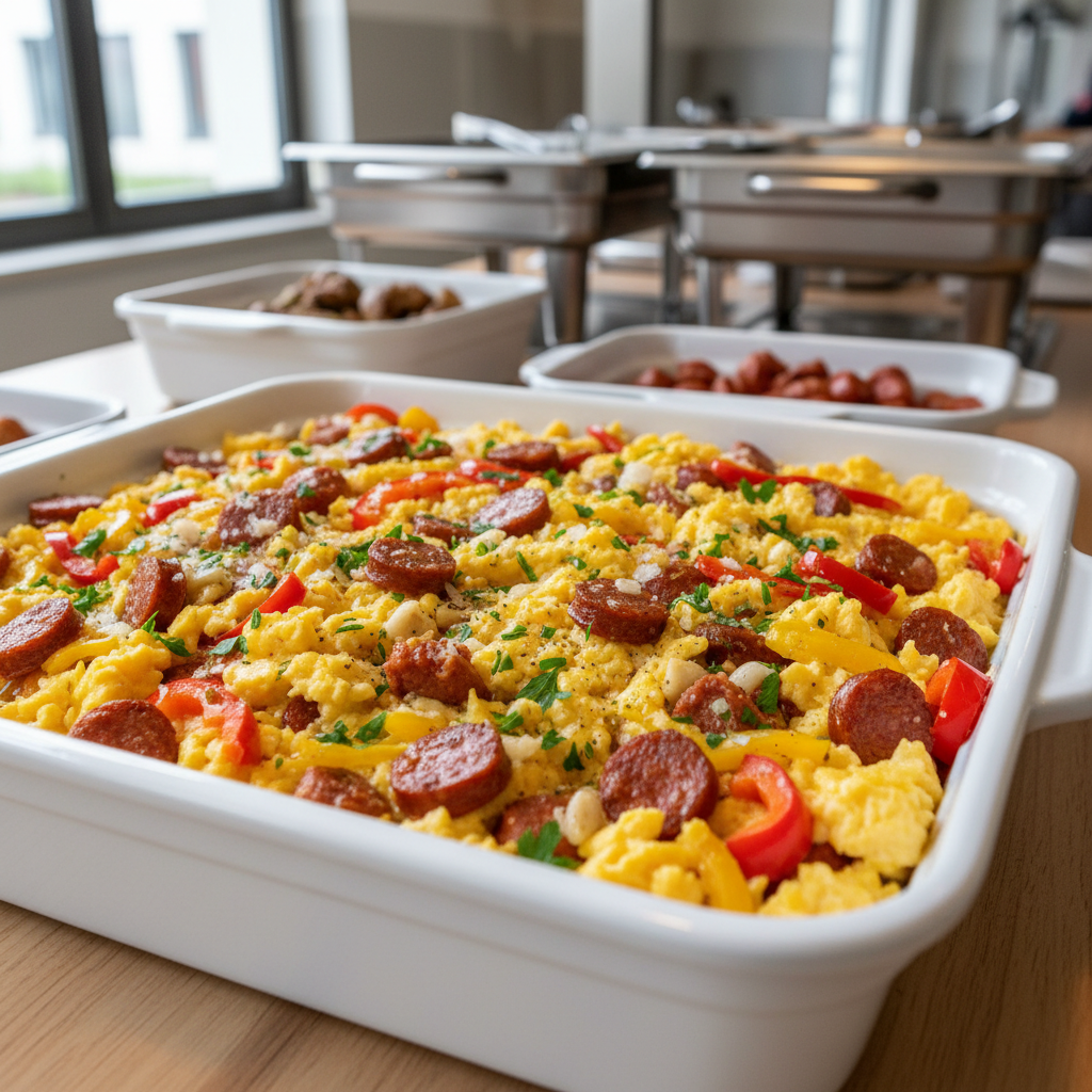 Envie de petit-déj savoureux et protéiné ? Voici une recette portugaise simple : œufs brouillés moelleux garnis de chorizo poêlé, poivrons rouges et herbes frais. Rapide, gourmand et parfait en famille dès 30 minutes.