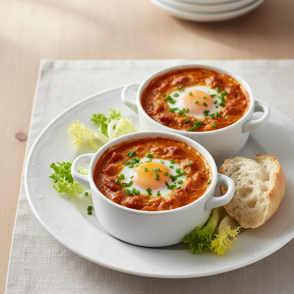 - Le jour J : Préchauffer four à 180°C. Beurrer légèrement 4 ramequins individuels. Verser piperade chaude dans chaque ramequin. Casser délicatement 1 œuf frais dans chaque ramequin, directement sur la piperade.