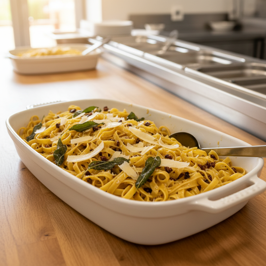 Voici la recette préférée de ma cuisine scolaire au Collège La Chênaie : un plat simple, savoureux et 100% naturel. Pâtes fraîches, beurre doré, sauge parfumée → zéro sauce industrielle, juste du bon. À faire en famille, avec enfants : c’est une vraie leçon de cuisine et de goût.