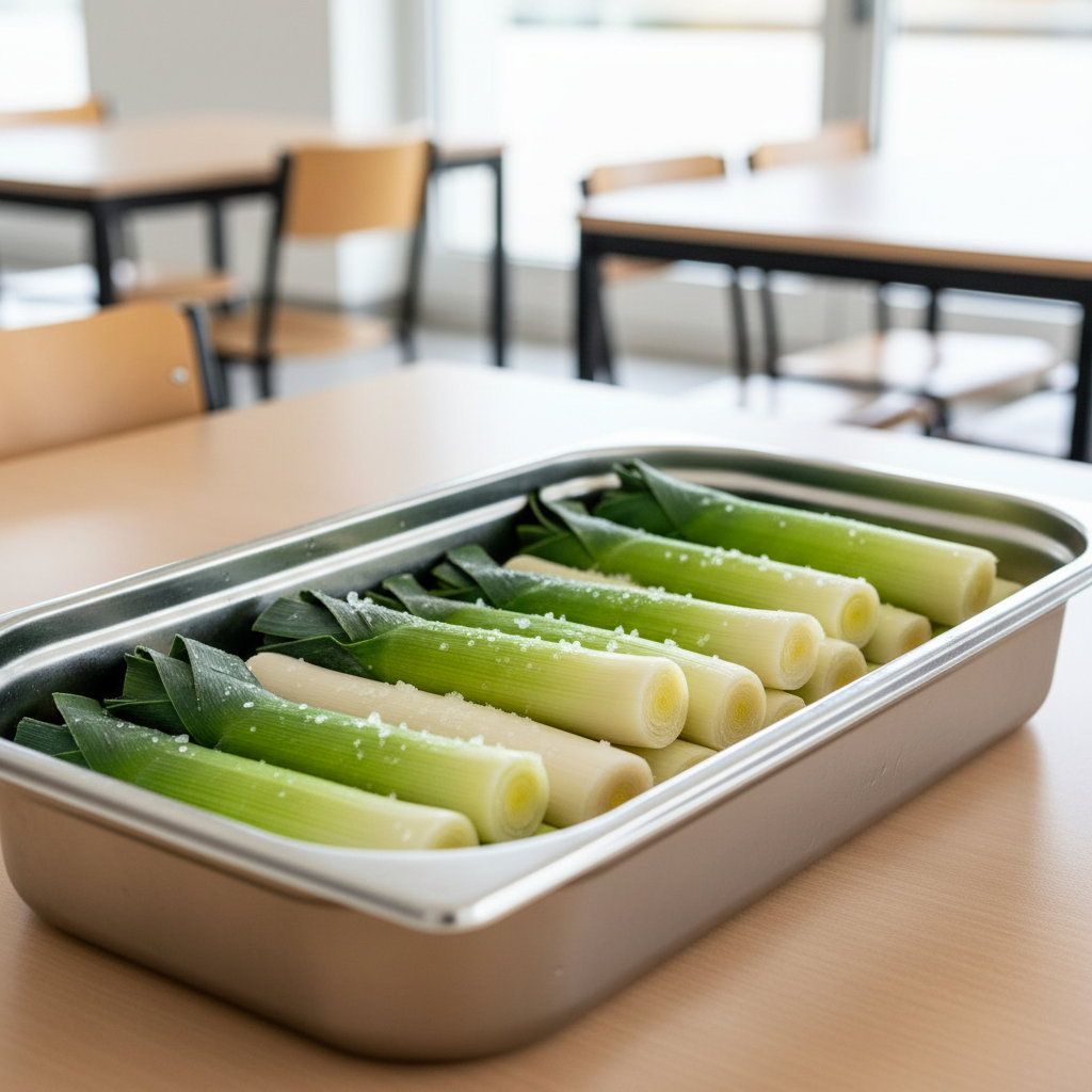 - Nettoyage : Ôter feuilles externes fatiguées. Laisser 3-4 cm de vert. Rincer généreusement sous eau froide pour enlever le sable. Couper poireaux en tronçons de 4-5 cm ou laisser entiers.