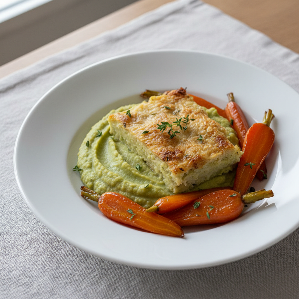 Voilà une recette réconfortante qui prouve qu’on n’a pas besoin de viande pour faire un bon parmentier ! Les pois cassés offrent des protéines et une texture généreuse, les carottes confites apportent une touche sucrée et la béchamel légère donne cette onctuosité irrésistible. Un plat complet, facile et vraiment savoureux.