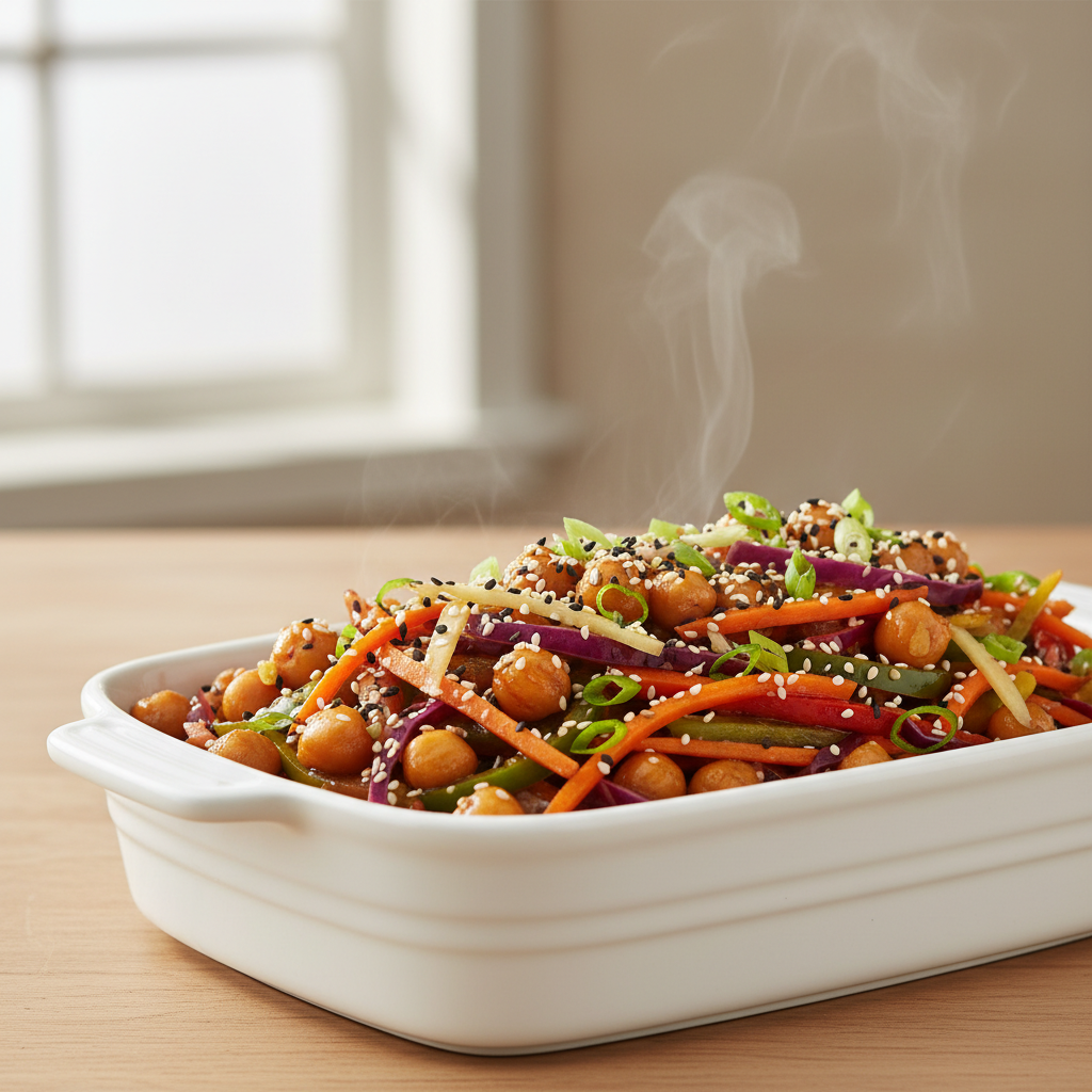 Pois chiches sautés aux légumes frais et sésame — Recette bio complète et gourmande