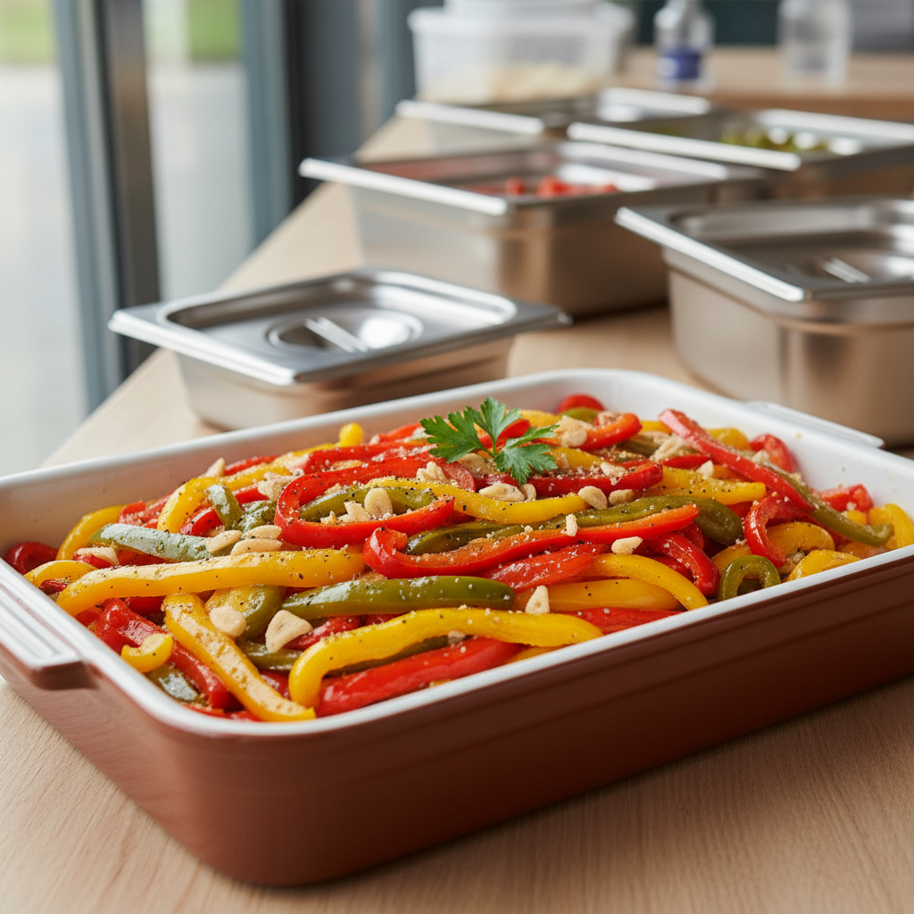 Les poivrons, c’est l’été dans l’assiette : croquants, sucrés, bourrés de vitamine C. Cette recette sans prétention révèle la vraie saveur du poivron frais, accompagné d’ail doux. À préparer en 45 minutes, budget malin, 100% végétal et facilement bio.