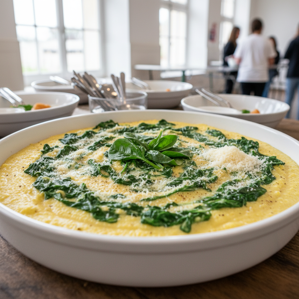 Cette polenta crémeuse incarne la cuisine simple et généreuse : semoule de maïs, épinards de saison, lait frais. Un plat très nutritif pour les enfants (fer, calcium, fibre douce) et délicieux à table familiale. Zéro complication, résultat garanti.