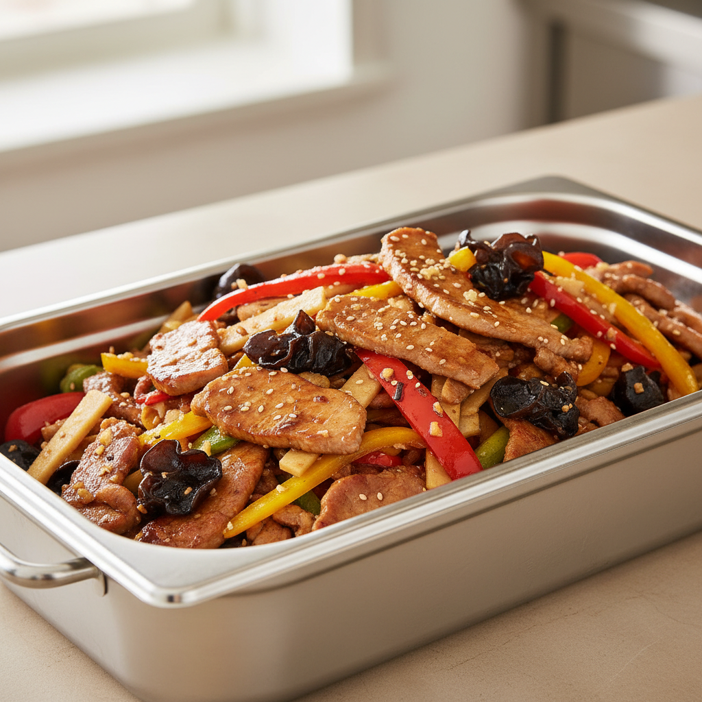 Envie de vous lancer dans la cuisine asiatique maison ? Ce sauté de porc très facile, c’est la recette type des collectivités scolaires où les enfants redemandent toujours. Ail frais, gingembre vivant, sauce soja authentique : trois ingrédients qui changent tout. Prêt en 30 minutes, succès garanti.
