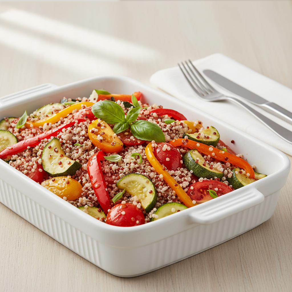 Une recette simple, saine et délicieuse, parfaite pour un déjeuner en famille ou un pique-nique d’été. Préparez-la la veille, conservez-la au frigo, et réchauffez-la à la vapeur. Le quinoa apporte tous les acides aminés essentiels : idéal pour les végétariens et vegans. À refaire régulièrement !