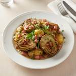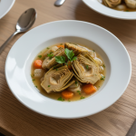 - Finition service : Drainer artichauts, placer en récipient de service chauffé. Verser jus de cuisson filtré ou proposer vinaigrette maison (huile + vinaigre + échalote). Alerte HACCP : vérifier absence contamination croisée avec produits carnés.