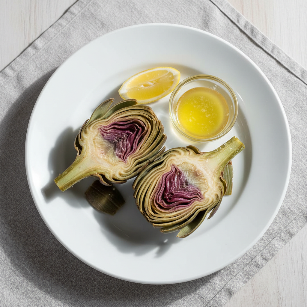 Déclinaisons : Texture modifiée : purée d'artichauts vapeur + émulsion herbes (régimes adaptés). Alternative végétarienne : nature, servi chaud avec beurre demi-sel bio. Variante bio : 100% si producteur labellisé. Sans allergène lait : huile d'olive vierge extra bio à la place du beurre, résultat léger et méditerranéen.