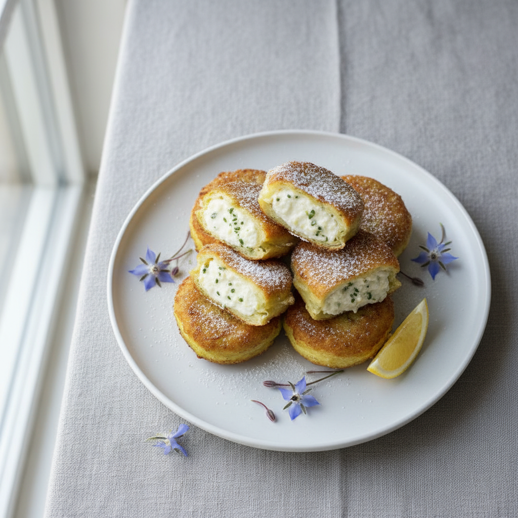 La ricotta fraîche AOP italiennes ou équivalents français (fromage blanc égoutté) offre une liaison riche sans lourdeur. Friture flash à 180°C garantit légèreté et digestibilité — critère capital en restauration scolaire.