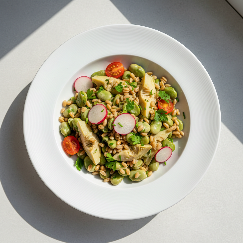 Ce blé aux haricots verts et amandes effilées incarne la simplicité professionnelle : trois ingrédients bruts, une technique de base maîtrisée, un rendu rustique et savoureux. Idéal en restauration collective pour diversifier l’offre céréalière sans surcharger l’équipe. Aisément déclinable en version sans gluten ou texture modifiée, conforme obligation EGAlim via circuits courts régionaux et certification bio.