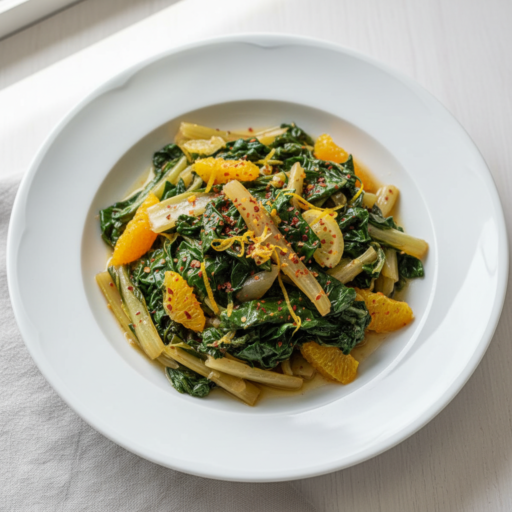 Blettes braisées aux agrumes et piment d'Espelette