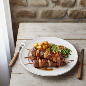 Plat GEMRCN P1 (viande) conforme, facilement déclinable en version végétarienne (tofu fumé) pour répondre à la diversité des régimes. Marinade réutilisable (viande + légumes fermes) sur plusieurs jours en liaison froide. Économie d’énergie : cuisson rapide, four partagé possible. À proposer en menu automne/hiver en alternance volaille ou poisson pour diversité protéique hebdomadaire. ROI pédagogique : démonstration circuits courts, réduction gaspillage (zéro parure si découpe de qualité).