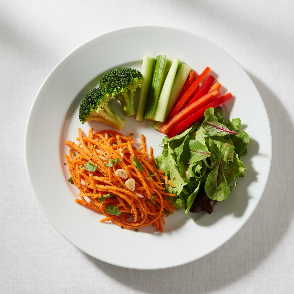Sur le plan nutritionnel, cette entrée crue apporte un cocktail vitaminé exceptionnel : bêta-carotène (précurseur vitamine A), vitamine C de l’orange fraîchement pressée, et composés antioxydants du gingembre. Les fibres solubles favorisent la satiété et le transit. L’huile d’olive vierge extra (AOP si possible) garantit des acides gras mono-insaturés de qualité, sans aucune trace d’acide gras trans.