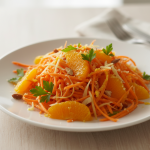 - Dressage et finition : Au moment du service, mélanger délicatement carottes râpées avec la vinaigrette à l'orange (environ 15ml par portion). Dresser en bacs GN ou saladiers. Parsemer de cerneaux de noix concassés et persil frais ciselé. Maintenir à +3°C jusqu'au service. DLC : J+1 maximum pour qualité optimale.