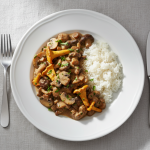 - Déclinaison végétarienne : Remplacer lardons sautés par champignons Paris 250g poêlés huile + ail 10g, torréfiés 4 min. Même braisage, même garniture aromatique. Rendu identique saveur umami.