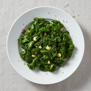 Déclinaisons : Texture modifiée (sans-âge) : prolonger blanchiment à 5-6 min, mixer partiellement après sauté pour texture semi-lisse. Alternative vegan : remplacer beurre par huile d'olive vierge extra bio (30g/100 cvts) + purée d'ail pressé, même protocole. Variante bio complète : chou frisé bio certifié + beurre bio + ail bio local. Adaptation sans allergène lait : utiliser huile d'olive vierge extra bio (30g/100 cvts) à la place du beurre, même sauté.
