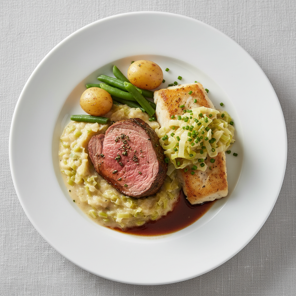- Service immédiat en assiette chaude ≥63°C, persil frais ciselé, tranche de citron décor. Conservation sous bain-marie ≤15 min max (risque dessèchement).
