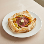 - Maintien chaud : Sortir four, couvrir film alu perforé. Maintenir ≥+63°C max 1h30 avant service (bain-marie tiède ou chariot à +65°C).