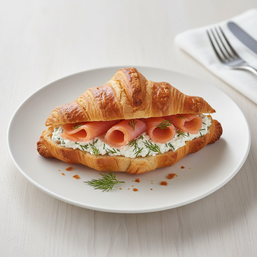 EGAlim : Conformité EGAlim : Crêpe (farine T65 bio ECOCERT Excellence), saumon fumé sauvage ou fermé bio label MSC/ASC, crème fraîche biologique ECOCERT, aneth frais circuit court (producteur local AMAP privilégié), citron bio régional. Estimé 85% bio en valeur. Alternative végétarienne : remplacer saumon fumé par tofu fumé bio ou champignons de Paris poêlés aux amandes. Suppléant protéique équivalent recommandé.