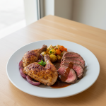 - Cuisson : enfourner +180°C ventilé 35 min. Vérifier T° cœur ≥75°C à +20min avec thermomètre. Dorage surface attendu, jus concentré.
