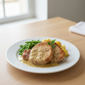 Cette échine de porc bio en sauce moutarde ancienne s’inscrit dans le respect complet du cahier EGAlim 2022 et de la certification ECOCERT Excellence. Rendement carcasse : 65-68%, parures valorisables, réduction sel optimale (9g/kg viande). Idéale pour menus scolaires, sociaux et restauration collective éthique. Classement GEMRCN P1 — Palette et échine.