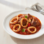 - Dresser sur assiette chaude pré-portionnée (150g encornets + 80g sauce). Garniture persil frais. Accompagnement : riz basmati bio ou pâtes complètes circuits courts.