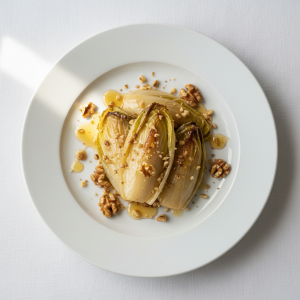 Endives braisées au miel et aux noix