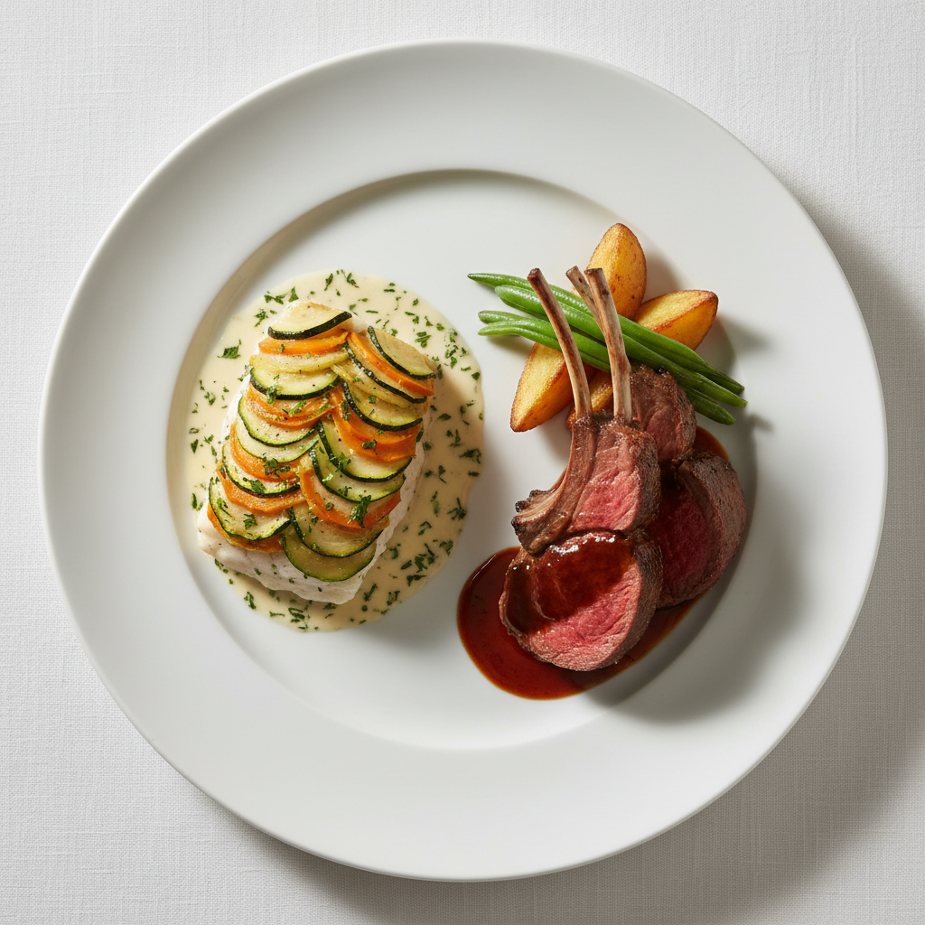 - Dressage : Plat ≥63°C. Poisson au centre, légumes autour. Jus de cuisson versé. Maintien liaison chaude en bain-marie ≥63°C si délai avant service <15min.