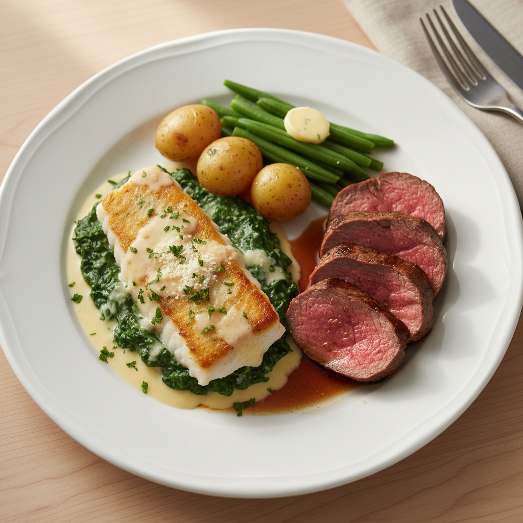 Conformité EGAlim 50% dont 20% bio : Filet de poisson MSC (pêche durable) ou Label Rouge obligatoire — colin MSC, lieu jaune Label Rouge, daurade royale Label Rouge disponibles chez mareyeurs régionaux. Crème fraîche AOP Isigny ou bio (PACA : Fromagerie du Sault, Hautes-Alpes). Légumes bio (carottes, navets, petits pois) disponibles auprès des AMAP PACA, MIN de Marseille (bio ≥ 60% de la recette hors poisson). Produits saisonniers frais : petits pois frais avril-juin, carottes nouvelles mars-juillet, navets primeurs mars-juin — privilégier le frais sur surgelé, qualité gustative et nutritionnelle supérieure. Circuits courts : Maraîchers du Mouansois, Coopérative Terr'Azur (Alpes-Maritimes), mareyage côtier Méditerranée (poissons de petite pêche : pageot, daurade, rouget).