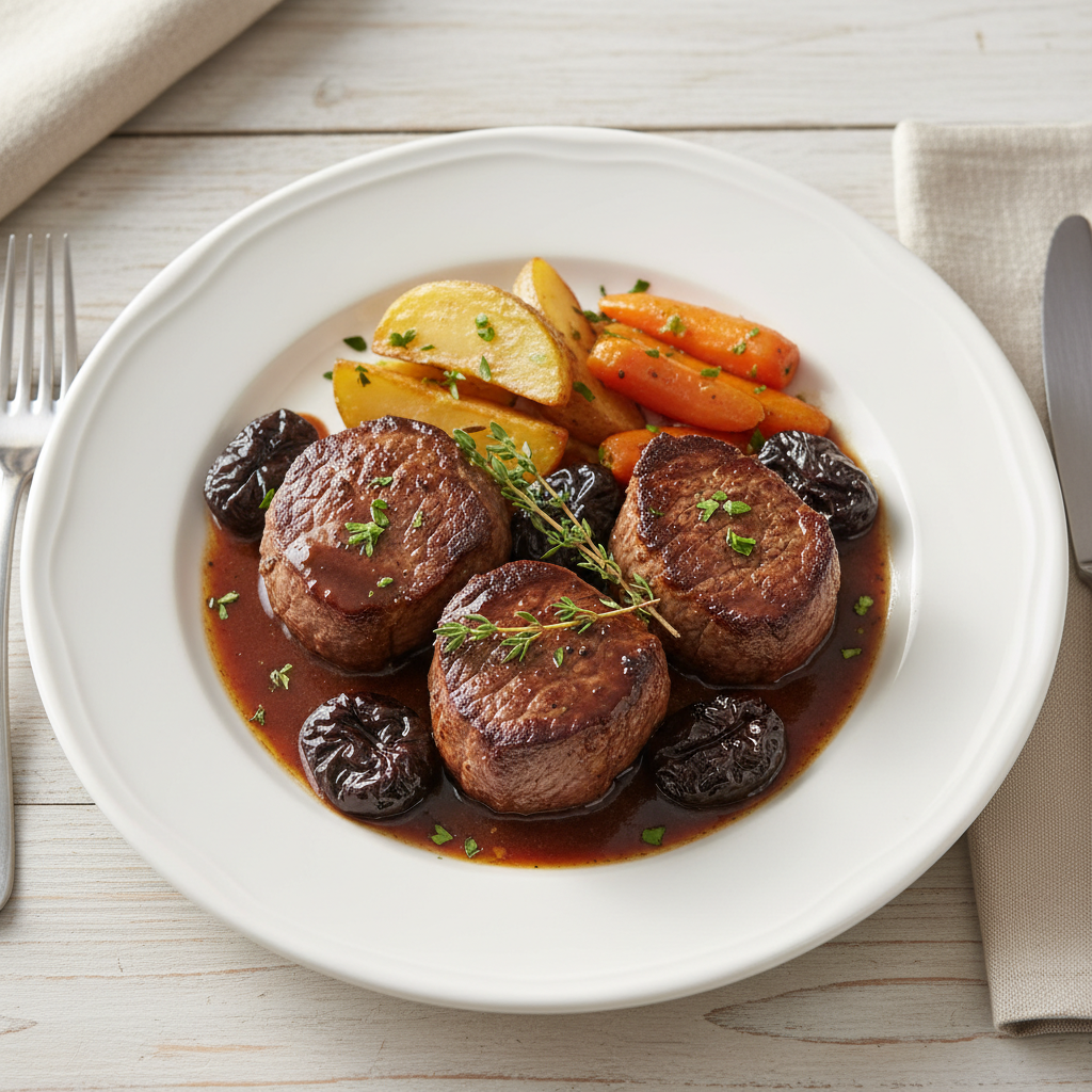 - Jour J (2h avant service) : Sortir filet mignon de +3°C, marquer 1-2 min par face en poêle à 160°C (huile arachide bio ou beurre clarifié). Température cœur : 45-50°C pour rosé.