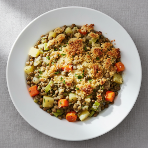 Ce gratin de lentilles vertes et légumes répond aux obligations EGAlim en offrant une source de protéines végétales de qualité, parfaitement compatible avec la restauration collective durable. Les lentilles vertes (Puy-en-Velay de préférence) apportent texture et minéraux essentiels sans farine ; les légumes proviennent de circuits courts locaux. Plat GEMRCN P4 polyvalent, économe en ressources énergétiques et en gaspillage alimentaire.