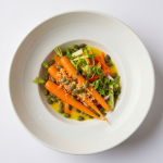 - Assemblage : servir légumes rôtis ≥63°C dans assiette tiède, parsemer graines torréfiées et persil frais 2 sec avant remise en salle.