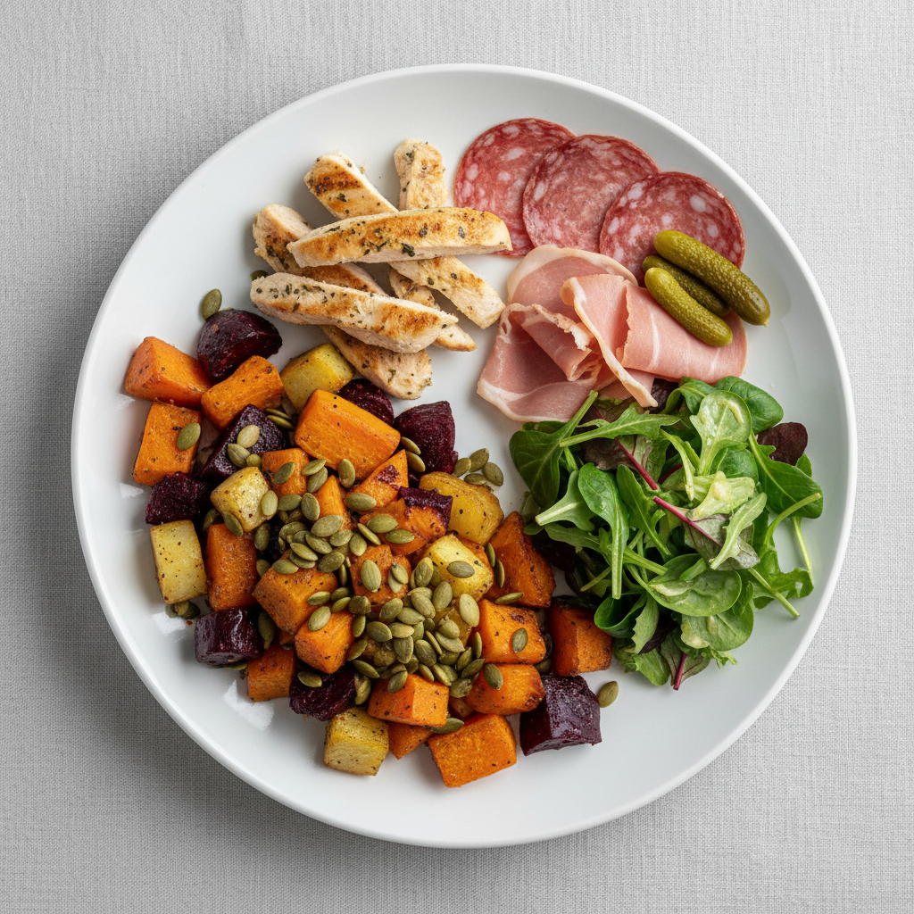 Légumes racines rôtis aux graines de courge